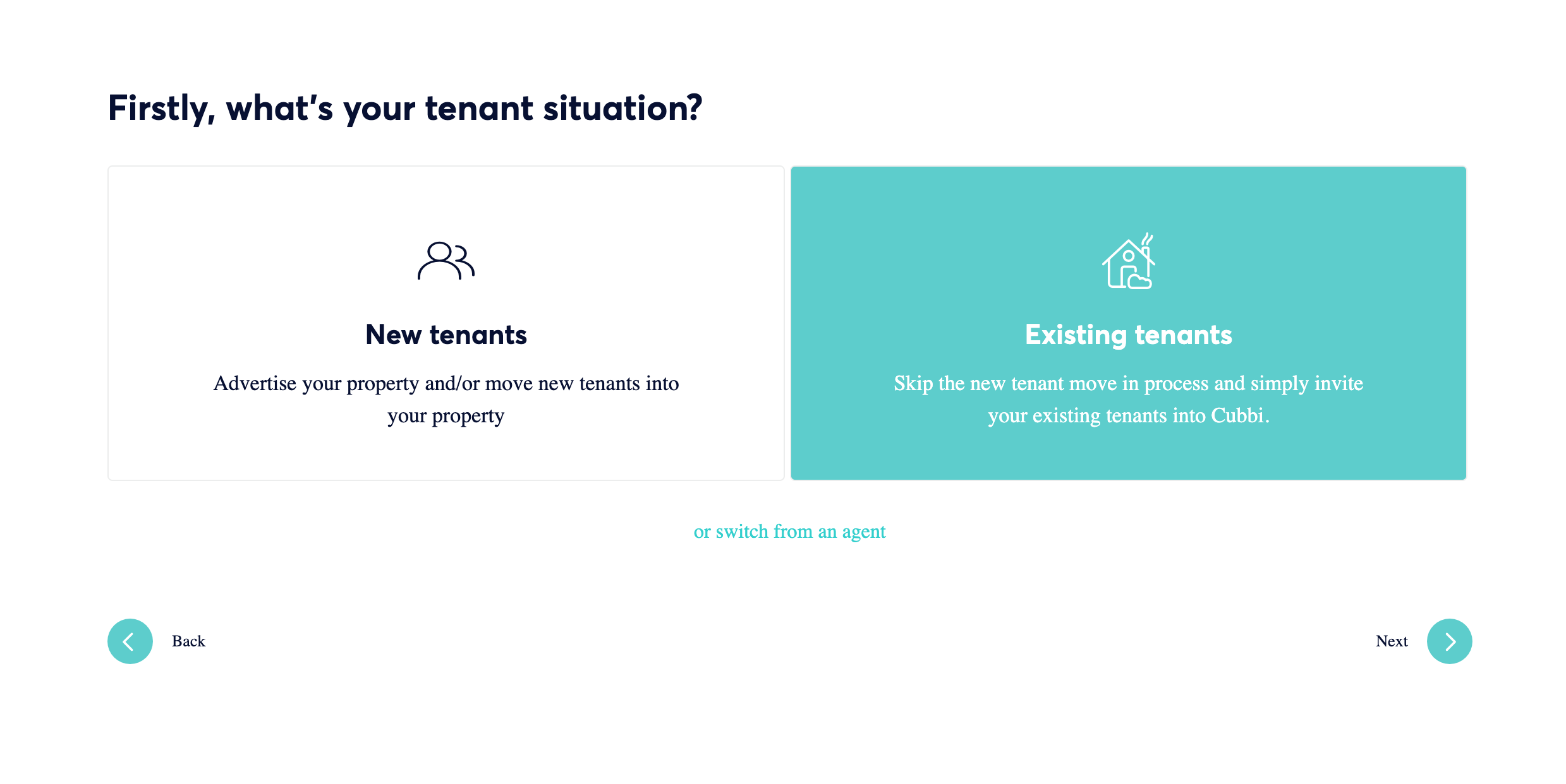 - Select “New tenants” if you need to advertise or create a lease for new tenants.